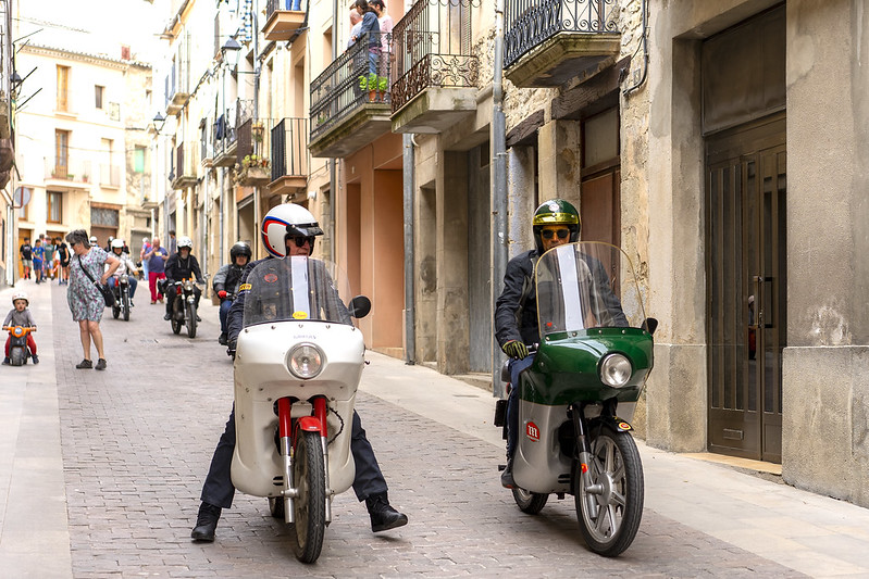 Iniciamos los reconocimientos hablando de los rallyes. Oriol Nubiola y Oriol Coromina prepararon sus motos con todos los complementos e instrumentos de la época. Además un panel con una selección de fotografías de los rallyes con Impala del MCI. Nos cuentan sus vivencias y presentan a Salvador Cañellas como persona imprescindible del motor en Cataluña.