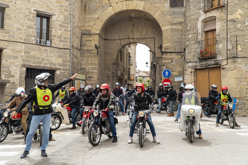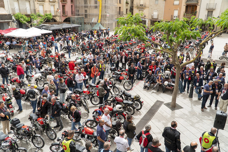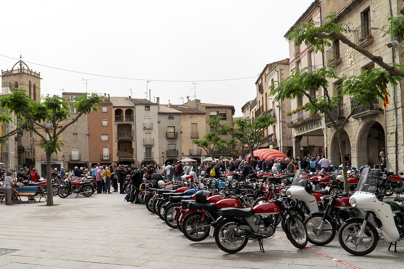 Pero todo esto quedó olvidado enseguida por las ganas de ir en moto, el buen ambiente habitual, y las carreteras escogidas. Y sobradamente compensado por la buena acogida de Santa Coloma de Queralt, donde hicimos la parada y reagrupamiento, aparcando las motos en la magnífica plaza mayor, y donde fuimos obsequiados con coca y refresco.