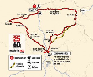 Recorrido: Manlleu (Colònia Rusiñol) – Sant Hipólit de Voltregà – Sant Boi de Lluçanès – Alpens – Les Llosses – Ripoll – Vallfogona de Ripollès – La Pinya (La Vall d’en Bas) – Sant Pere de Torelló – Manlleu (Colònia Rusiñol)