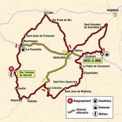 | Recorrido: Hotel Bruc (El Bruc) – Sant Salvador de Guardiola – Òdena – Els Prats de Rei – Calaf – Sant Guim de Freixenet – Santa Coloma de Queralt – Pontils – Seguer – Esblada – La Llacuna – Sant Joan de Mediona – Sant Pere Sacarrera – Capellades – La Pobla de Claramunt – Castellolí – Hotel Bruc |