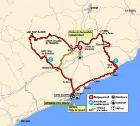 | Recorrido: Santa Susanna – Blanes – Lloret – Tossa – Sant Grau – Llagostera – Caldes de Malavella – Sils – Santa Coloma de Farners – Sant Hilari Sacalm – Sant Feliu de Buixalleu – Hostalric – Tordera – Santa Susanna (Hotel Atzavara) |