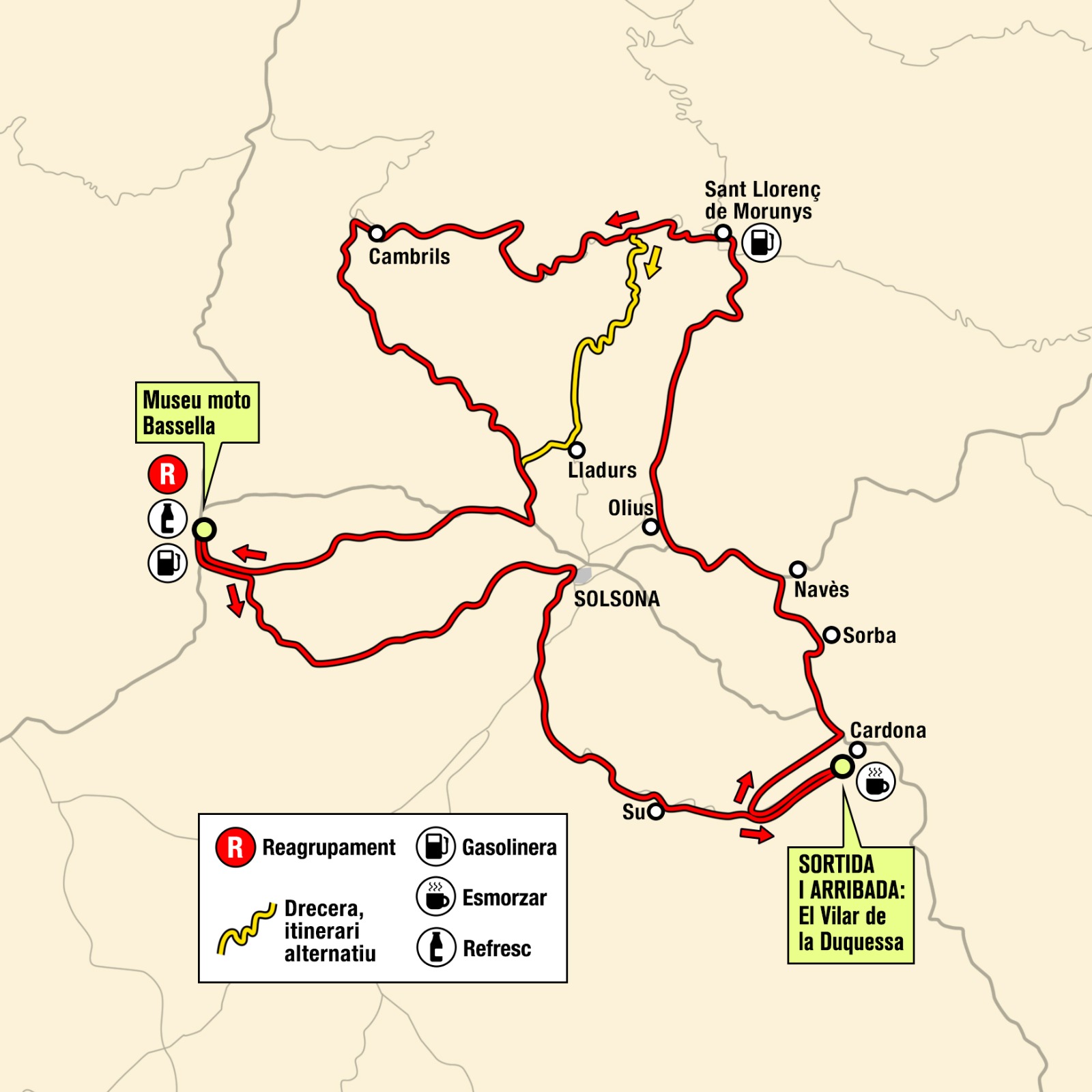 La ruta de este año transcurrirá por las comarcas del Bages, Solsonès y l'Alt Urgell. La salida y llegada serán en El Vilar de la Duquessa de Cardona, y realizaremos una ruta de unos 180 kilómetros aproximadamente.